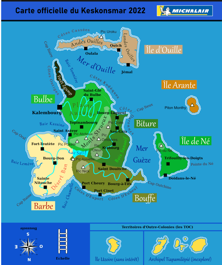 Ouille est l’île légendaire des Úys1,une peuplade craintive qui se carapatait à la moindre alerte, en glapissant des « Ûy … Ûy … Ûy ! ». Et puis un jour, ils firent une…