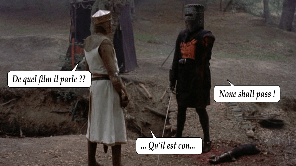 La troupe se révéla moins vaillante sur la route qui monte au Piton. Il faut connaître le film. A peine le danger fut-il survenu que ses hommes avaient courageusement disparu. Ils prirent la tangente après avoir été insultés par des gardes en mauvais français, tournèrent les talons face à un essaim de jouvencelles excitées, détalèrent après avoir été mis déroute par un lapin sauvage, ne se posèrent aucune question pour éviter de traverser le pont de la mort.